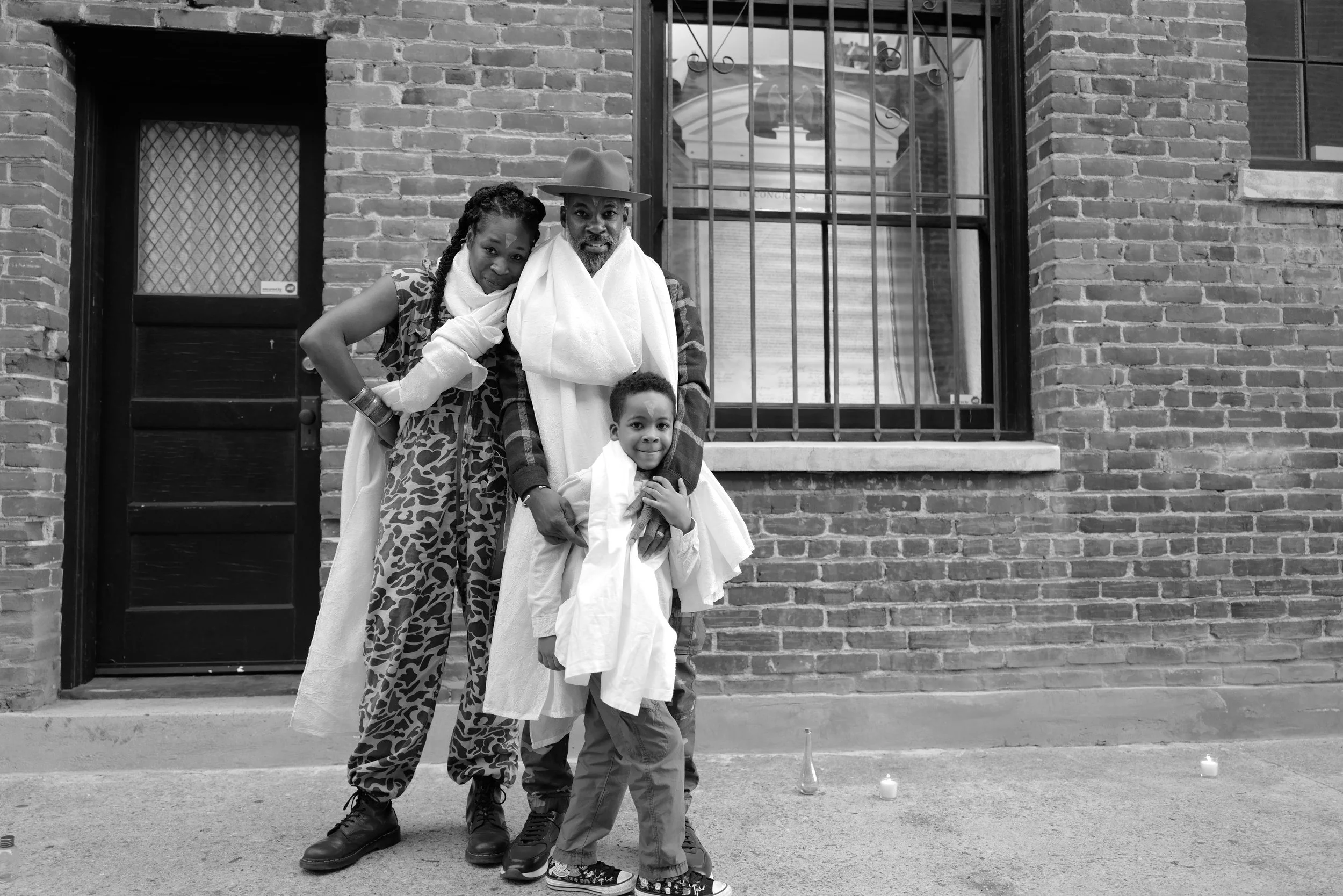 Family photo of Marjani Forté-Saunders + Everett Saunders and their son. They are artists who are radically experimenting at the intersections of art, philosophy, spirituality, and culture.